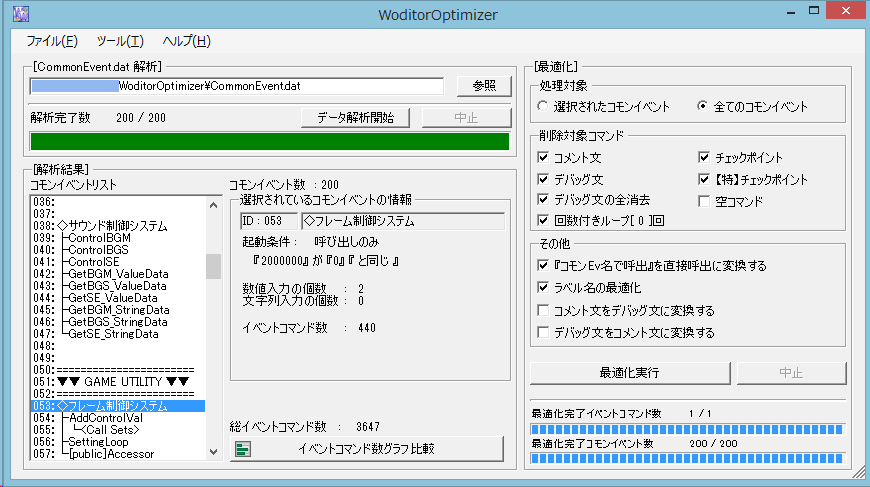※このウディタ用ツール『WoditorOptimizer』は